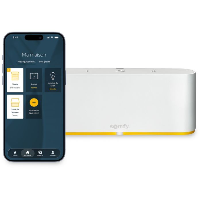 La box domotique TaHoma® switch les transforme en équipements connectés que vous pilotez depuis votre smartphone, où que vous soyez. Centralisez le contrôle de votre maison, créez des scénarios d’automatisation et profitez du confort d’une gestion intelligente - sans installation complexe et sans abonnement.